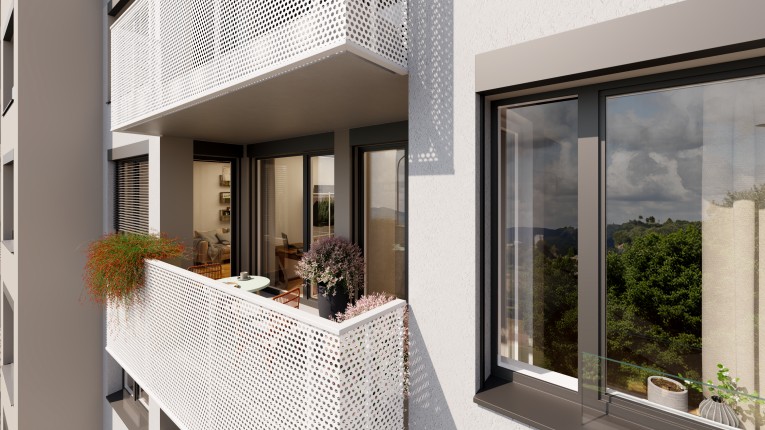 The residential part will feature a variety of outdoor spaces facing the inner courtyard. Apartments on the lower floors will offer comfortable covered loggias of different sizes, while the upper floors will include both smaller and more generous terraces adjoining the apartments.